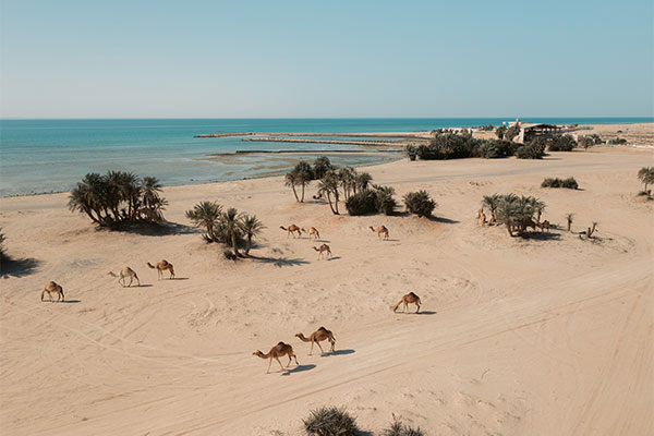 Also known as palm tree beach, Umm Bab is a quiet spot about 1 hour west of Doha. With scattered palms and sandy shores, it is a great place for beach barbecues, swimming, and camping under the stars.